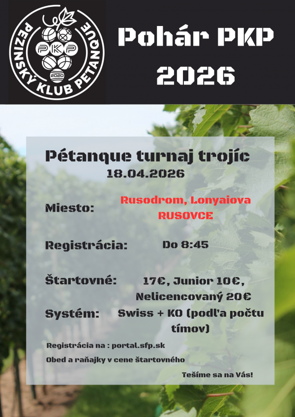 Hráč alebo jeho zákonný zástupca štartom na turnaji dáva súhlas na spracovanie a zverejnenie osobných údajov a fotografií Slovenskou Federáciou Petanque a usporiadateľom turnaja v zmysle zákona č. 18/2018 Z.z. a ochrane osobných údajov – GDPR.
